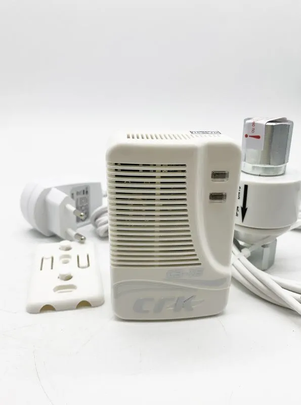 Тип бытового датчика утечки: детектор метана (CH4), Диаметр подключения: DN20, Встроенный сигнализатор: определяет концентрацию газа в воздухе, Электромагнитный клапан: автоматическое перекрытие подачи газа при утечке, Индикатор: световой и звуковой сигнал при превышении нормы, Контроль загазованности: постоянный мониторинг уровня газа.