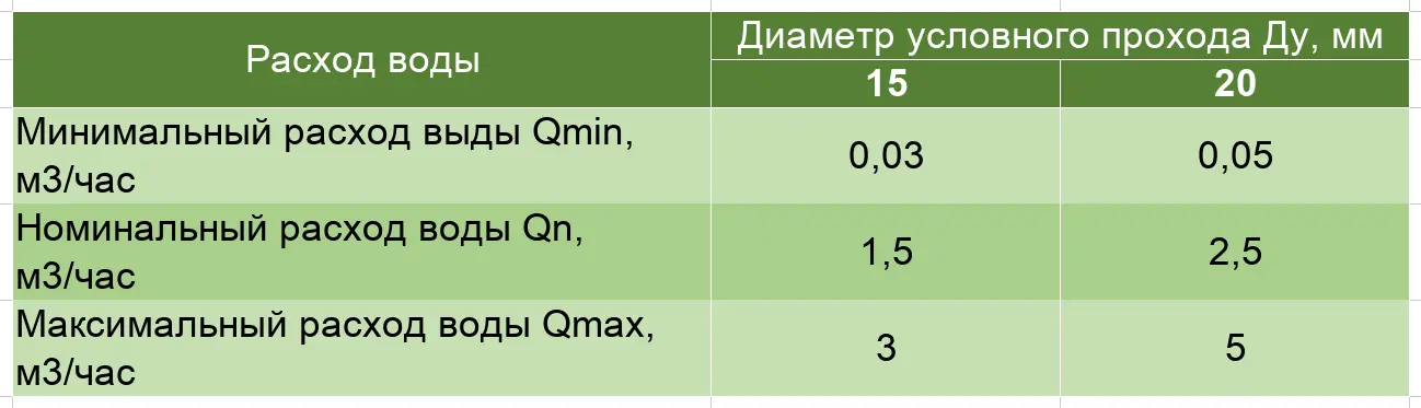 Еще одним фактором, определяющим выбор модели счетчика, являются параметр среднего расхода воды, определяемого как м3/час. Это значение нельзя игнорировать, так как от него во многом зависит точность получаемых данных. При превышении предельных значений счетчик может давать погрешность как в одну, так и в другую сторону. Далее, нужно заглянуть в техпаспорт изделия и поинтересоваться другими параметрами расхода, такими как: минимальный расход – Qmin, максимальный расход – Qmax, номинальный расход (Qn).
